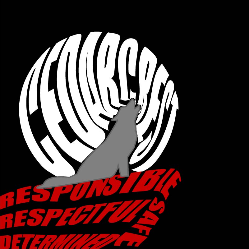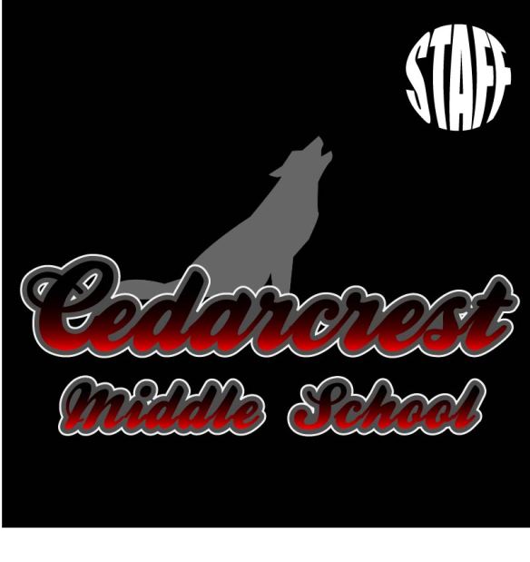 Misty pointed out that the staff font stuck out like a sore thumb and didn’t work that great with the Cedarcrest lettering. I changed the “middle school” font to be the same as the moon in an attempt to pull it all together. Once it was changed it became pretty obvious to us that the simplistic layout was the best. This ended up being the logo that we liked the most (and my official final product):